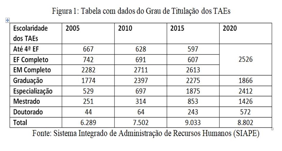 Um comentário sobre “15 anos em dados: Grau de Escolaridade e Titulação dos Técnicos Administrativos em Educação da UFRJ em quatro momentos – 2005, 2010, 2015, 2020”